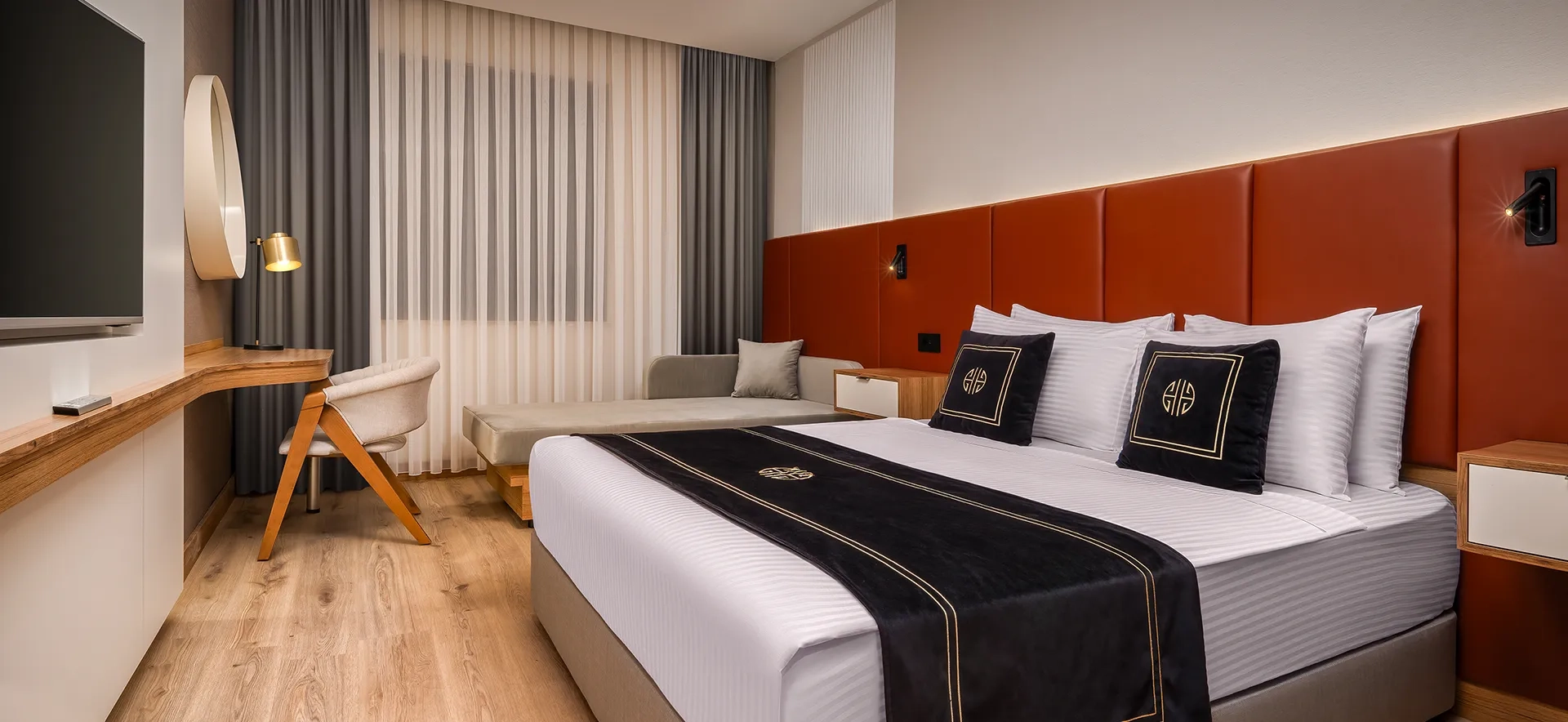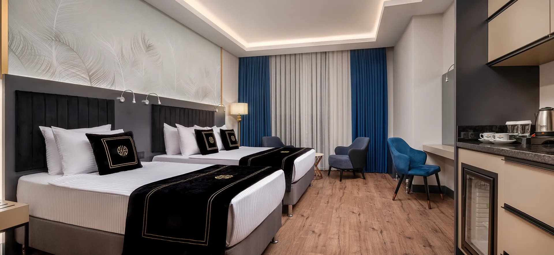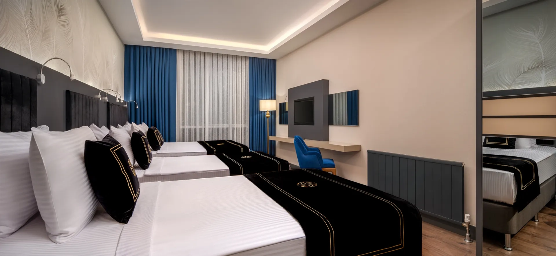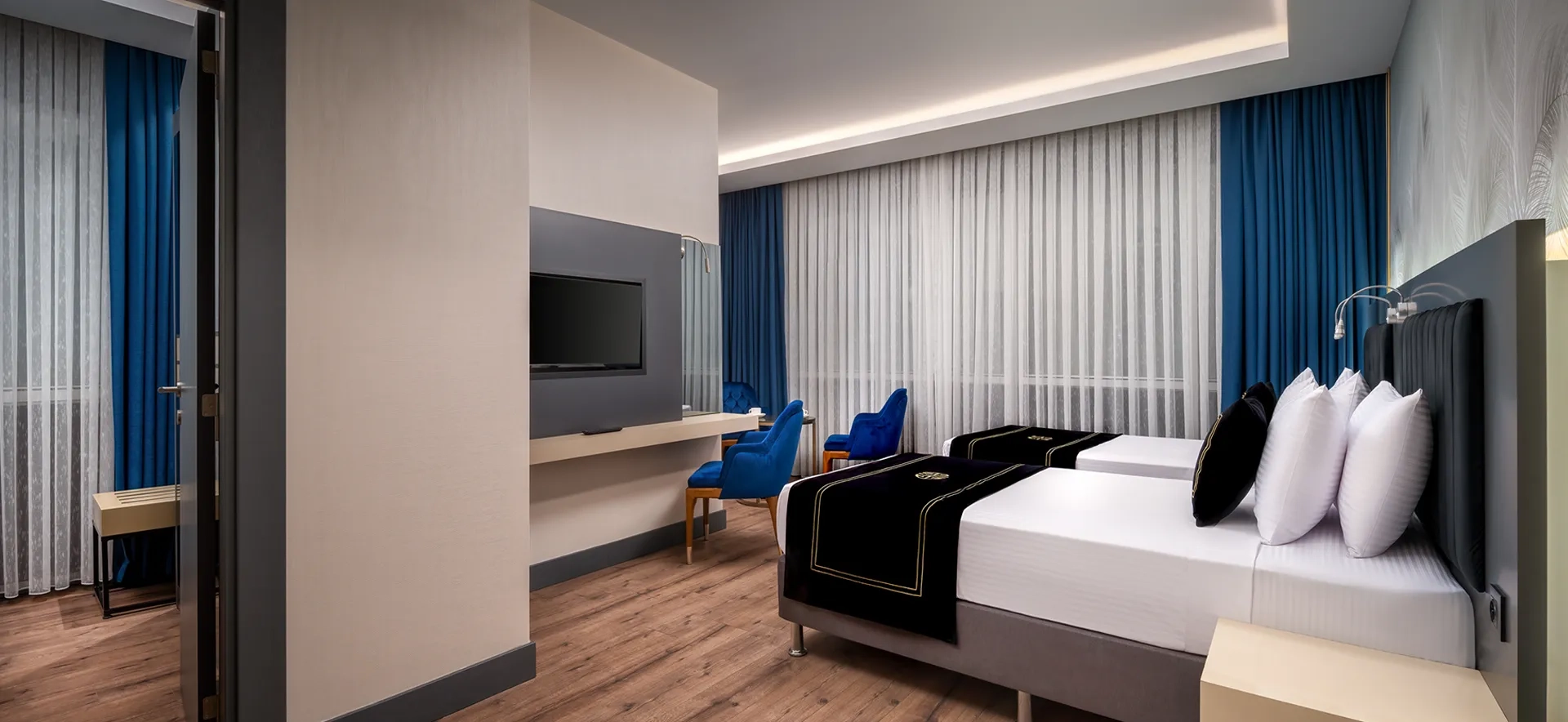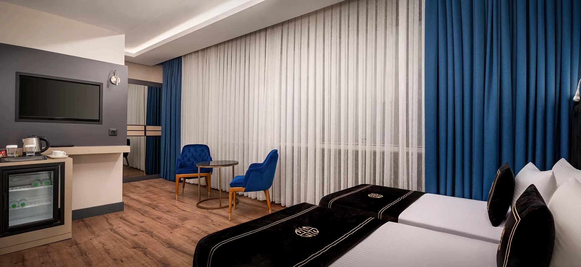 Cet emplacement à Arnavutköy offre un accès facile à nos précieux clients, qu’il s’agisse de voyages touristiques ou d’affaires. Il vous aide à vous débarrasser de la fatigue de la journée avec ses 110 chambres où vous pouvez sentir le calme et le confort de votre maison, un copieux petit-déjeuner à partir de 05h00 du matin, un restaurant à la carte avec un menu riche ouvert jusqu’à 02: 00 et design moderne.
